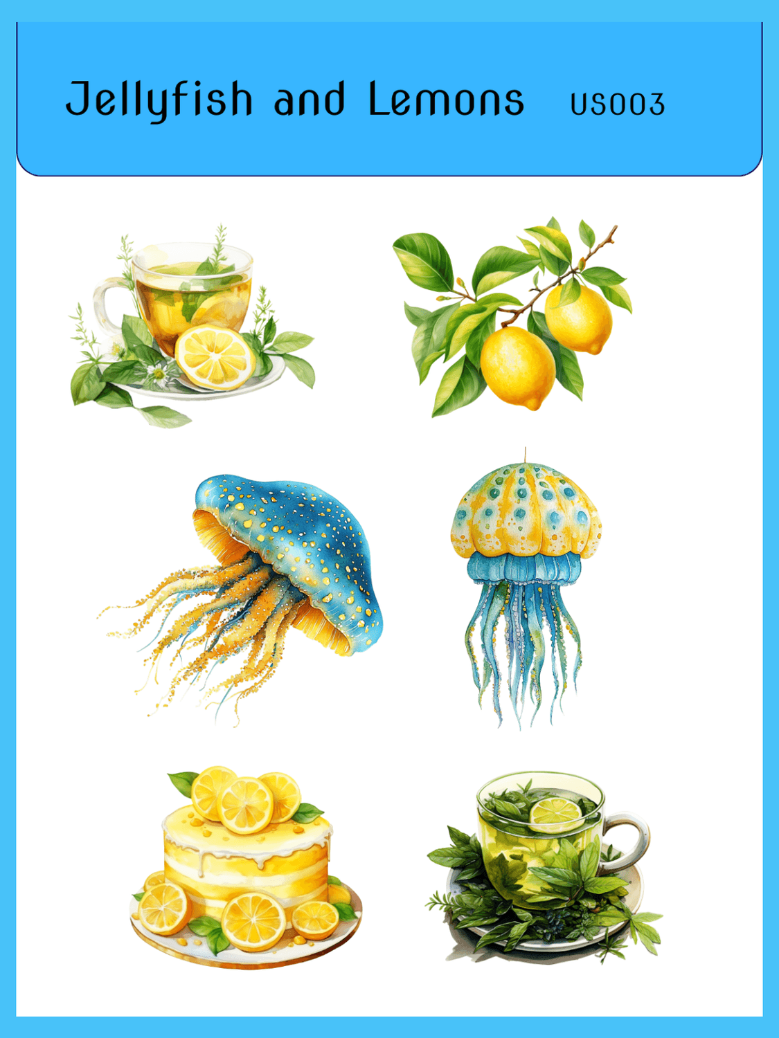 Lemons and Jellyfish Sticker Sheet $3.25 each or $8.50 a set.